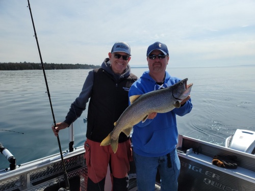 Fishing out of Mackinaw City towards the south is firing on all cylinders now. The water is touching 40 degrees and the slot between the mainland and the island is holding lots of fish. I caught nice fish on the south half of the island in 50-60' My best producing sets were the copper rods at either 75' or 125' with bright colors of Dreamweaver Super Slims. Speed was 2.4 and the sun definitely helped. This bite will hold for at least a month